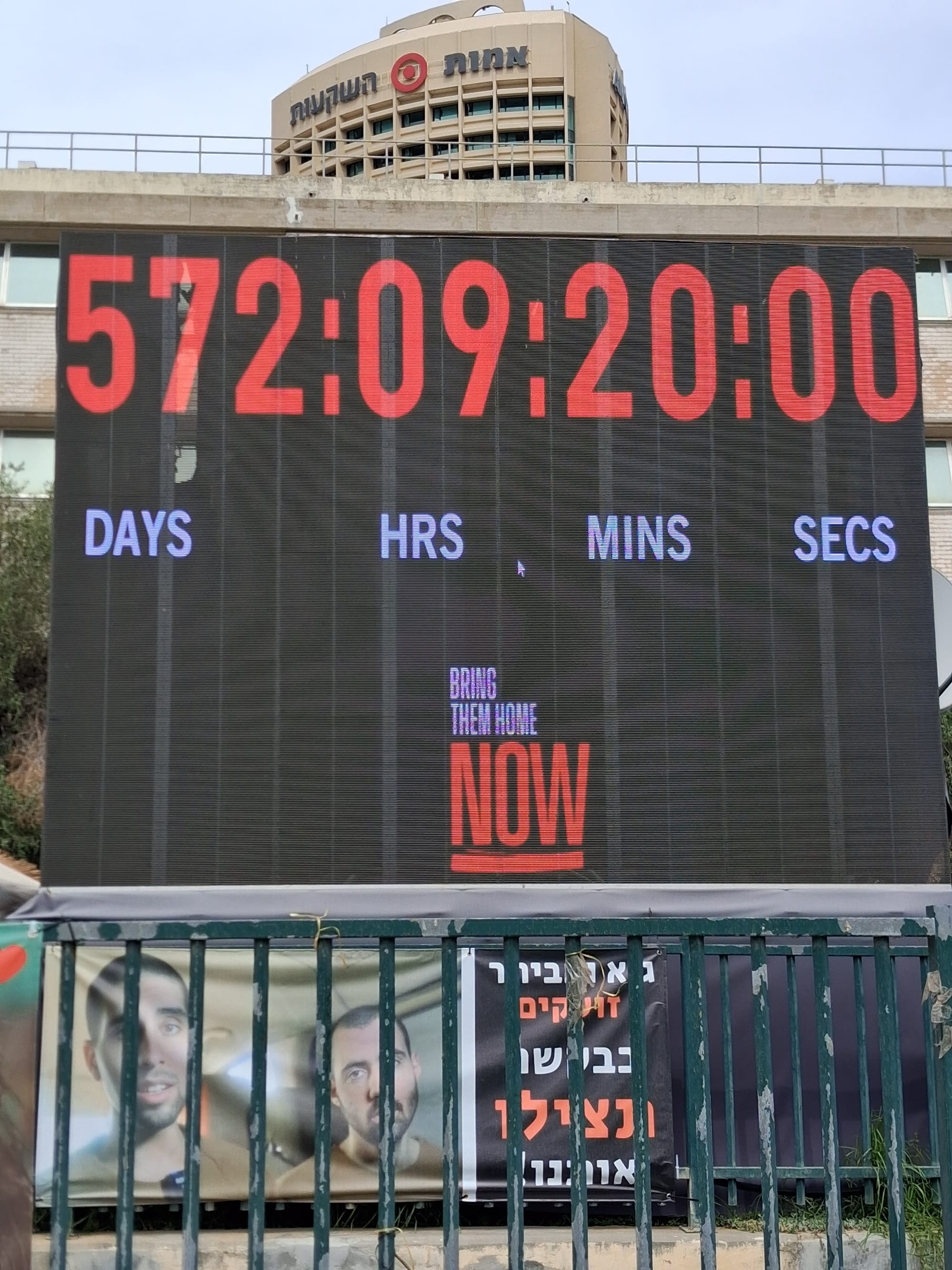 In Hostage Square in Tel Aviv, we listened to survivors talking about their experiences. Under a gigantic electronic screen that counts the number of days, hours, minutes and seconds since the attacks of October 7, we saw hundreds of people gathered in support of the families of the hostages that died and of those that are still in captivity. Their dignified suffering is difficult to describe.