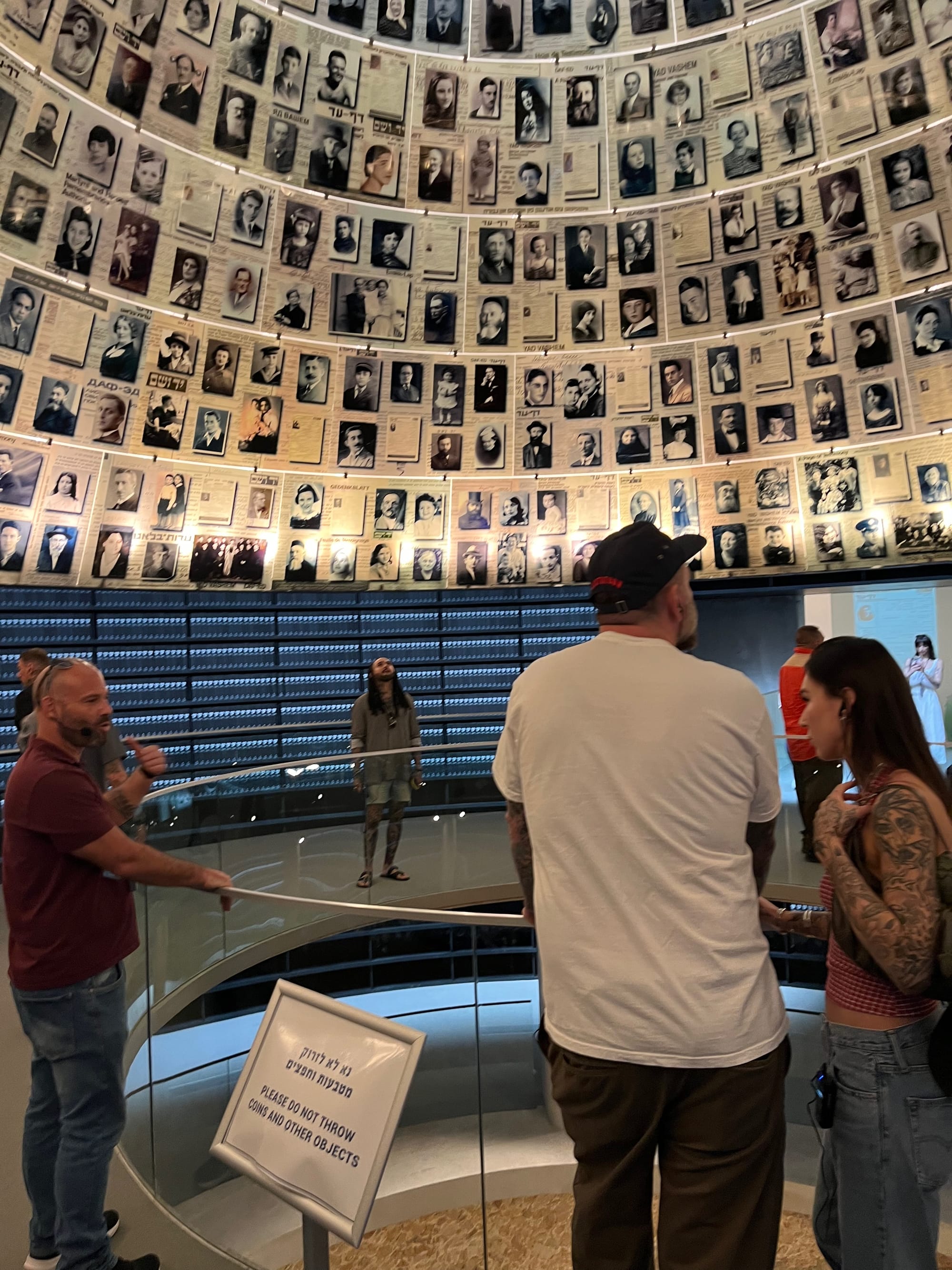 In the National Memorial Hall for Fallen Soldiers, the walls of the hall wrap around a tall torch-like structure which is covered with the names of the fallen. The name and the date of passing of each soldier is engraved in each individual stone of the structure. The female soldier that guided us told us that every morning a memorial service is held in order to honour those who fell on that specific date and the individual stone is illuminated within the walls of the hall–every one of the fallen has a memorial day, she explained and the “eternal flame” at the centre of the hall symbolises Israeli’s collective duty to commemorate them.