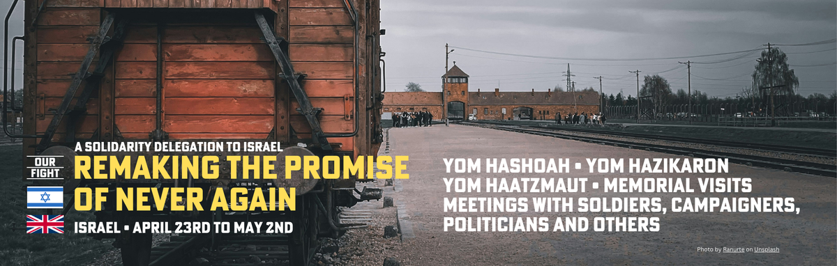 - Beginning April 23rd, grassroots campaign Our Fight is making a solidarity trip to Israel to show support during an important week which spans a number of commemorations; for the victims of the Holocaust, the brave fighters of the Warsaw Ghetto Uprising, the hostages from October 7th, and IDF's fallen soldiers.