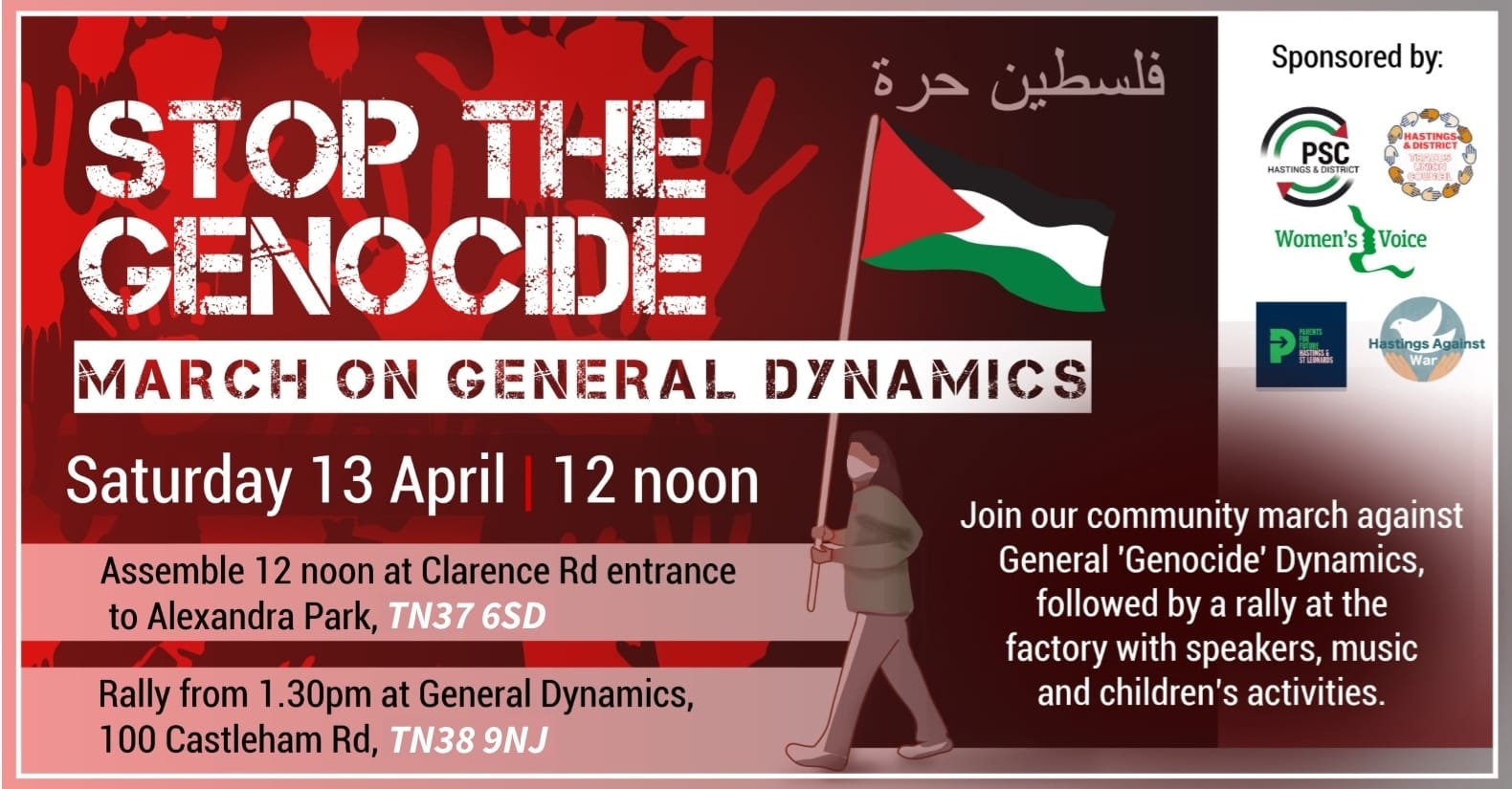 We focused on a specific event that a local PSC group was organising, outside the General Dynamics factory in Hastings.