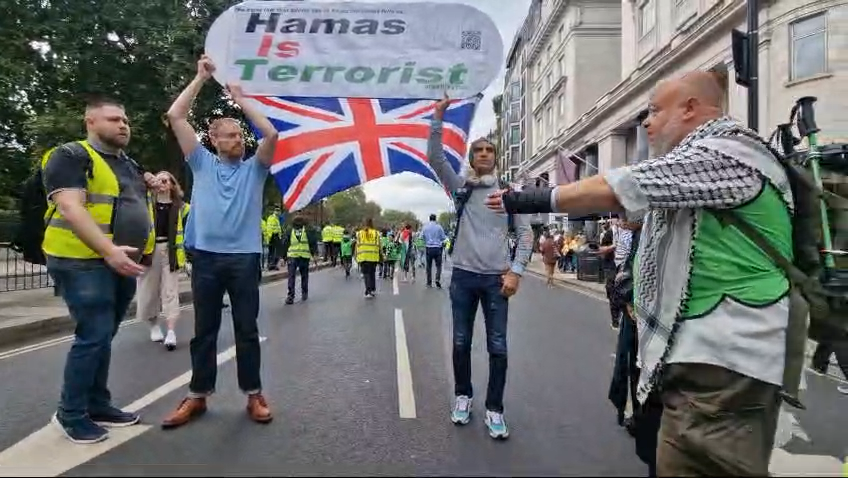 So for tonight, let's be clear. Tonight we are not protesting. Tonight we are asserting our right to walk the streets of Britain, wearing a legal t-shirt. We are asserting our right to attend a gig. And we assert our right not to be arrested under whatever concocted charge you believe will allow you to appease the anti-Semitic mob — a mob that wants to drive Jews and Israelis out of public life.